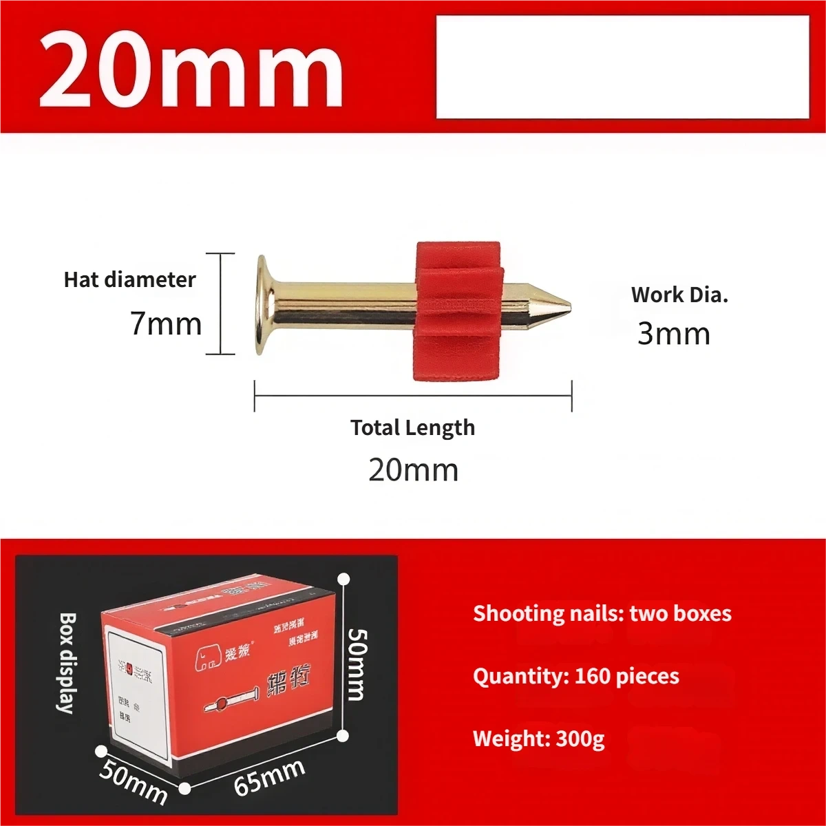 Understanding the full specification of the 20mm Mini Concrete Fastener Pin ensures correct tool selection and compliance with structural requirements. Key parameters include a 20mm total length, 7mm cap diameter, and 3mm working diameter — all consistent with industry-standard powder-actuated fastener dimensions.