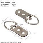 The Silver Heavy Duty Large D-Ring Hanger 50kg achieves its exceptional rating through a combination of heavy-gauge components: the 1mm plate resists bending, the 2.3mm ring wire handles significant tensile load without deforming, and the two 4.8mm holes spread mounting stress across a 33mm-wide base. This multi-element design makes K07 suitable for museum-quality frame installations.